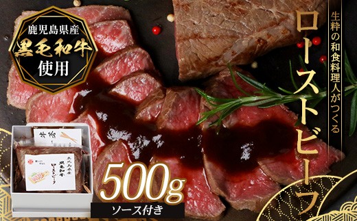 - 生粋の和食料理人がつくる \\ 鹿児島県産 黒毛和牛 ローストビーフ// ≪500g×1≫ 手作り 牛蒡ばるさみこそーす(バルサミコソース)100g付き GN-1|鹿児島県 南大隅町 ローストビーフ 牛肉 リブロース 銀シャリ中はら