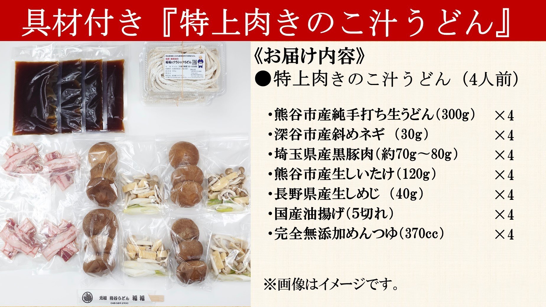 - 【特上肉きのこ汁うどん(彩の国黒豚・熊谷市産生しいたけ三人前・国産油揚げ100%)】(4人前)TV番組『バナナマンのせっかくグルメ』紹介店!他にもTV出演多数!熊谷市産小麦『あやひかり』100%使用! 国産 無添加 化学調味料・保存料不使用 手打ち TV紹介店