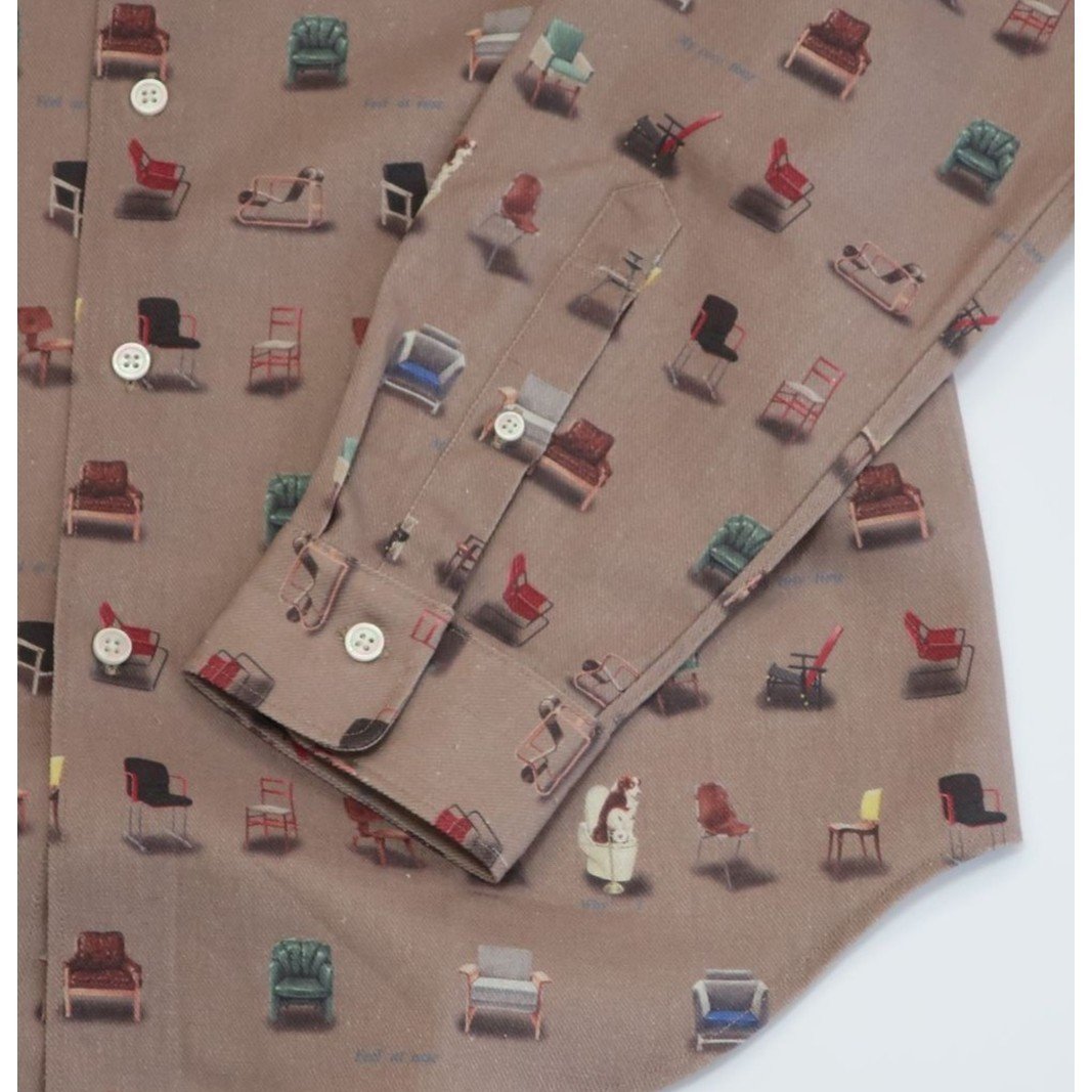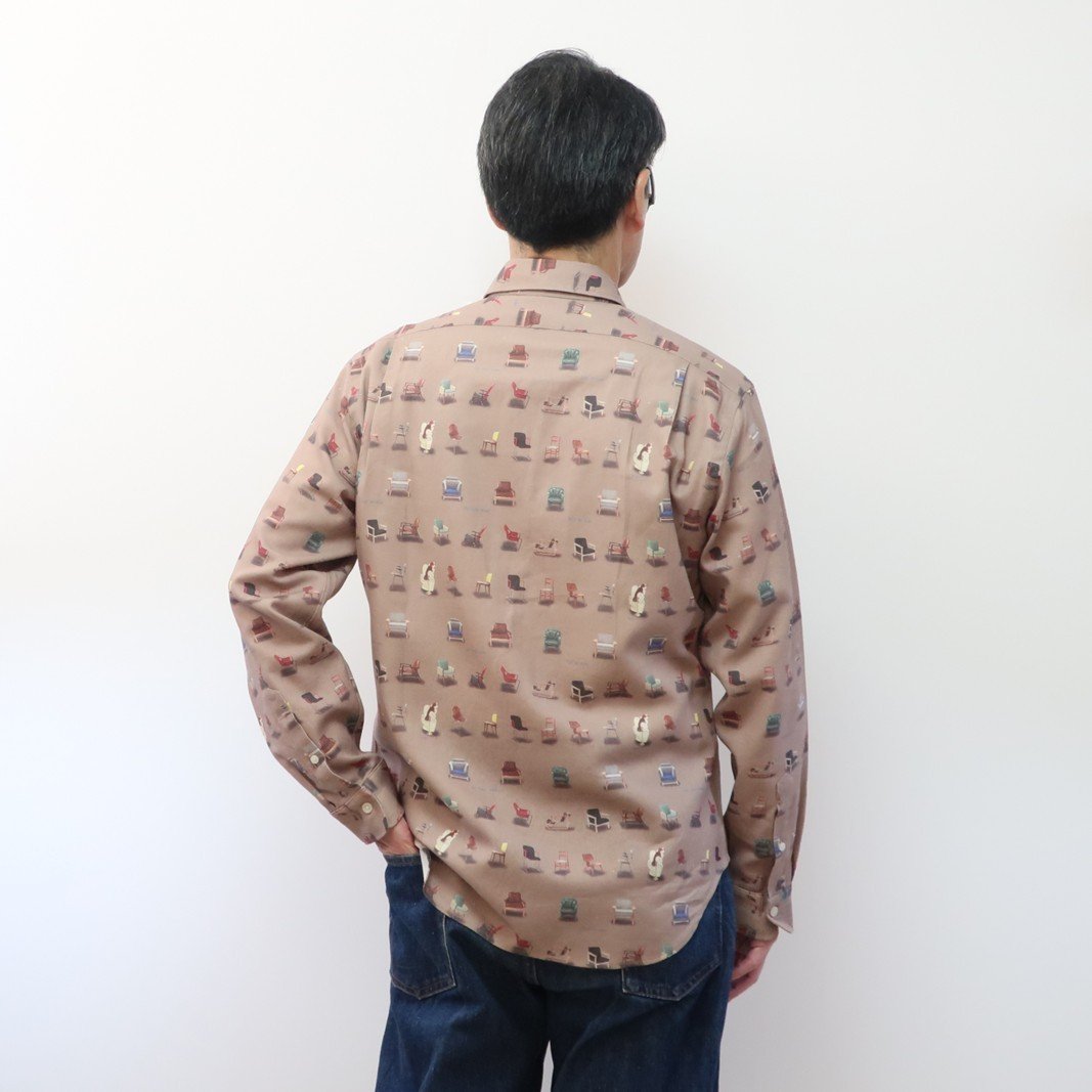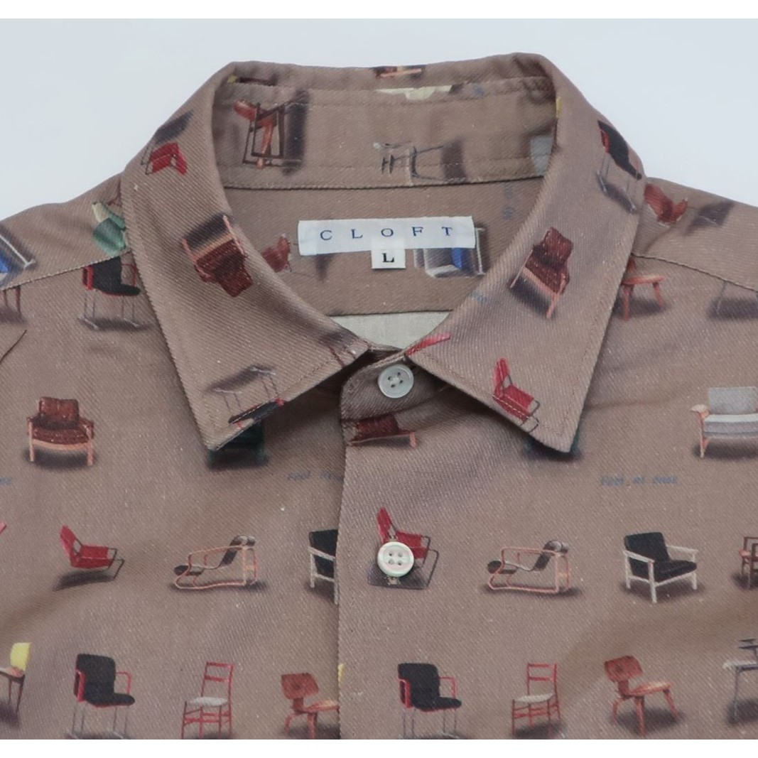 CLOFT 長袖プリントシャツ ”チェアー家具” 綿麻ツイル M 新宿区 長袖 シャツ オリジナル 柄 アート チェアー 上質 縫製 プレゼント 贈り物 柄シャツ 0139-011-S07-1