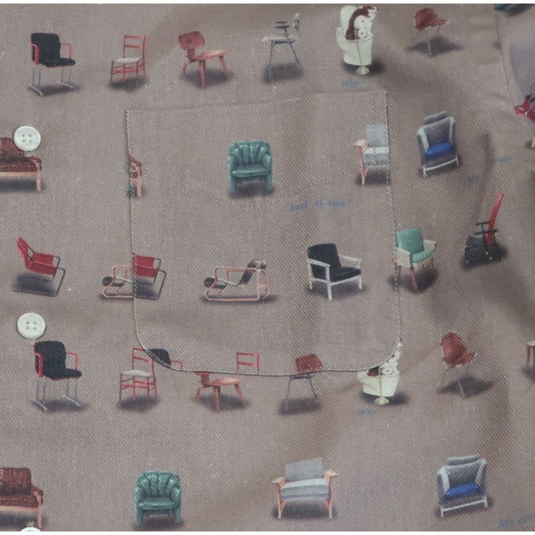 - CLOFT 長袖プリントシャツ ”チェアー家具” 綿麻ツイル M 新宿区 長袖 シャツ オリジナル 柄 アート チェアー 上質 縫製 プレゼント 贈り物 柄シャツ 0139-011-S07-1