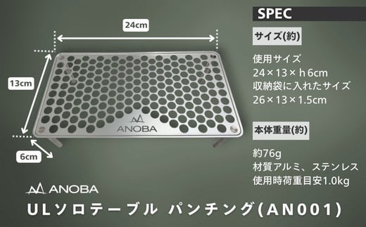 - ANOBA ULソロテーブル パンチングタイプ (AN001)|軽量 折りたたみ アウトドア キャンプ 登山 ソロキャン コンパクト設計 ミニテーブル