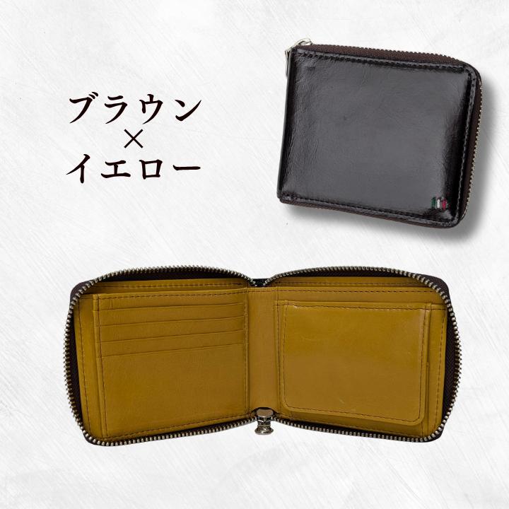 - 二つ折りファスナー財布 / 財布 サイフ さいふ 二つ折り財布 イタリア 革 革製品 牛革 レザー 革小物 クラフト 送料無料