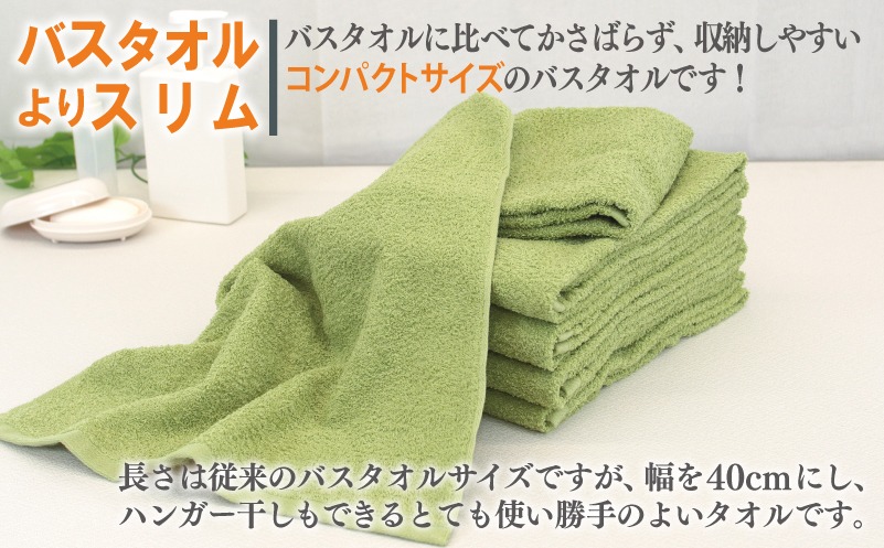 - 005A762 【お試し】ミニバスタオル 1枚(グリーン)40cm×120cm 500匁 【国内製造 泉州タオル フェイスタオル 以上 バスタオル 未満 吸水 普段使い シンプル 日用品 家族 ファミリー】