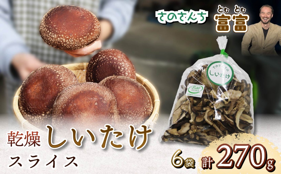 乾燥 しいたけ スライス 45g 6袋 富富(とむとむ)さのさんち 椎茸 シイタケ きのこ 安心 安全 JGAP認証農場 干し椎茸 国産 乾燥椎茸 小分け キノコ 調理 簡単 便利 静岡県 藤枝市