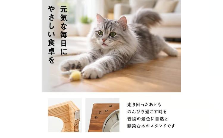 小型犬・猫用 フード&ウォータースタンド 1台 (蜜ろう) ペット用品 ペット 犬 猫 食器台 餌台 ボウル付 杉 木製 雑貨 日用品 インテリア 職人 ハンドメイド 手作り 手仕事 数量限定 【JK08】【隠れ家具工房 木吉】