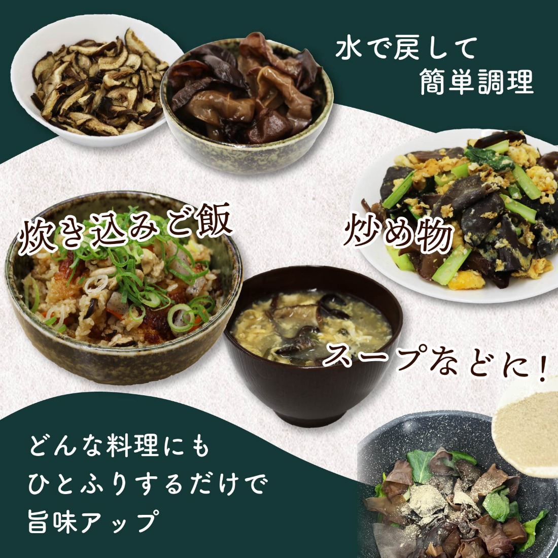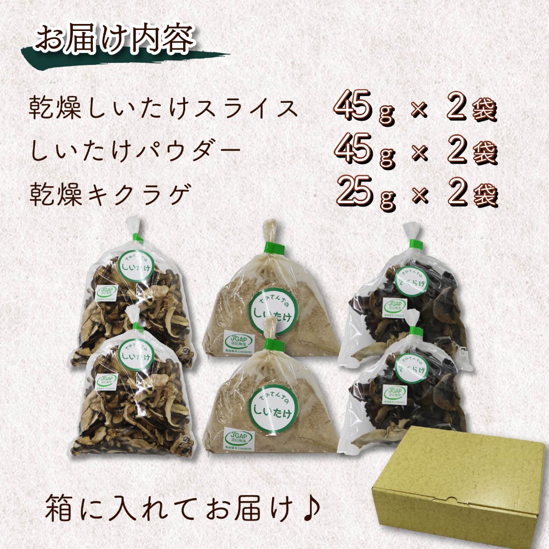 - 乾燥 キクラゲ 25g しいたけ スライス 45g しいたけ パウダー 45g 各2袋 計6袋 富富(とむとむ)さのさんち 椎茸 シイタケ くらげ 丸干し 木耳 パウダー 粉 出汁 きのこ 安心 安全 JGAP認証農場 干し椎茸 国産 乾燥椎茸 小分け キノコ 調理 簡単 便利 静岡県 藤枝市