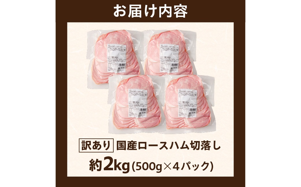 - ns009-036-4 【訳あり】国産ロースハム切落し2kg(500gx4p)