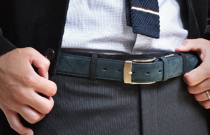 - G2966 本革(ヌバック)ベルト35mm幅 ネイビー【革ベルト ベルト レザー ビジネス スーツ メンズ 仕事 ファッション 小物 日用品 雑貨】