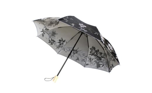 - 槙田商店【晴雨兼用折りたたみ傘】”絵おり” 百合:黒 FAA5065
