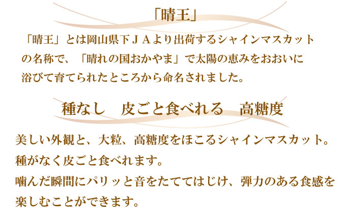 - ぶどう 2026年 先行予約 シャイン マスカット 晴王 約400g×2房 8月下旬~11月下旬発送 ブドウ 葡萄 岡山県産 国産 フルーツ 果物 ギフト 岡山の葡萄 デザート 食後