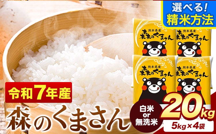 令和7年産 無洗米 も 選べる 森のくまさん 20kg 5kg × 4袋 白米 熊本県産 単一原料米 森くま《7-14日以内に出荷予定(土日祝除く)》《精米方法をお選びください》送料無料---mifune_lcl_1239_20kg---