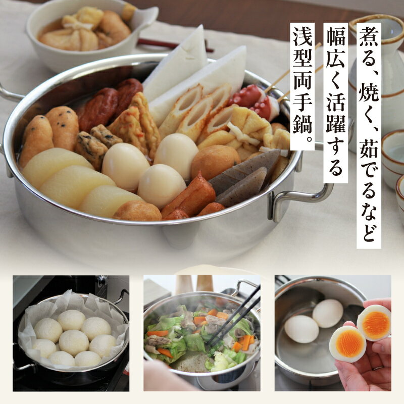 【ふるさと納税】 ジオ・プロダクト 浅型両手鍋 22cm 25cm 28cm 直火 IH 対応 鍋 浅型 ステンレス 15年保証 ステンレス鍋 キッチンツール キッチン用品 調理器具 宮崎製作所 新潟県 燕市 燕三条