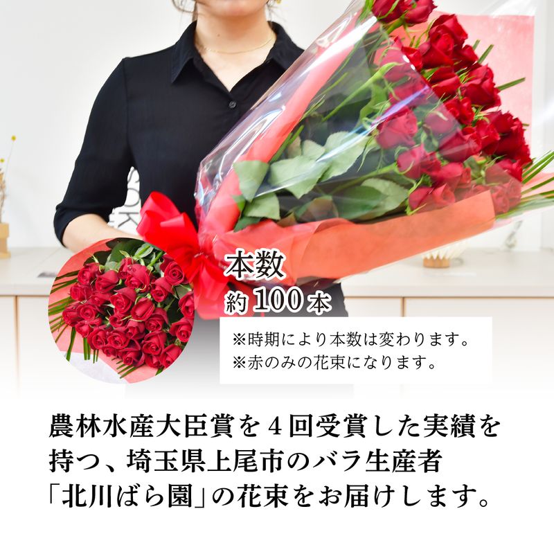 【ふるさと納税】<配送エリア限定・着日指定必須> 生産農家直送 バラ花束 新鮮 赤 約100本 | バラ 薔薇 ローズ 花束 植物 インテリア 誕生日 記念日 お祝い 母の日 父の日 ラッピング有り リボン付き 多品種 農林水産大臣賞 生花 プレゼント ギフト 埼玉県 上尾市