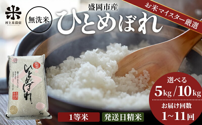 【ふるさと納税】★新鮮!発送日精米★ひとめぼれ 【無洗米】 選べる内容量/発送回数 5kg 10kg(5kg×2袋) 1回 2回 3回 4回 5回 6回 7回 8回 9回 10回 11回 令和7年産 盛岡市産 ◆1等米のみを使用したお米マイスター監修の米◆ お届け:2025年10月中旬より順次発送