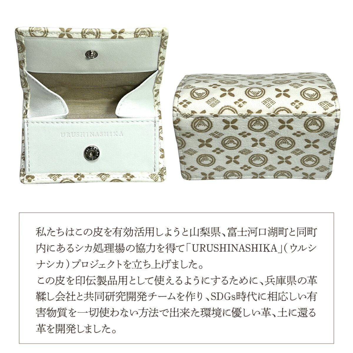 - 【ふるさと納税】 白い甲州印伝「URUSHINASHIKA」コインケース ふるさと納税 カードケース カード入れ オフィス かっこいい かわいい 鹿 しか シカ 甲州印伝 山梨県 富士河口湖町 送料無料 FCR008