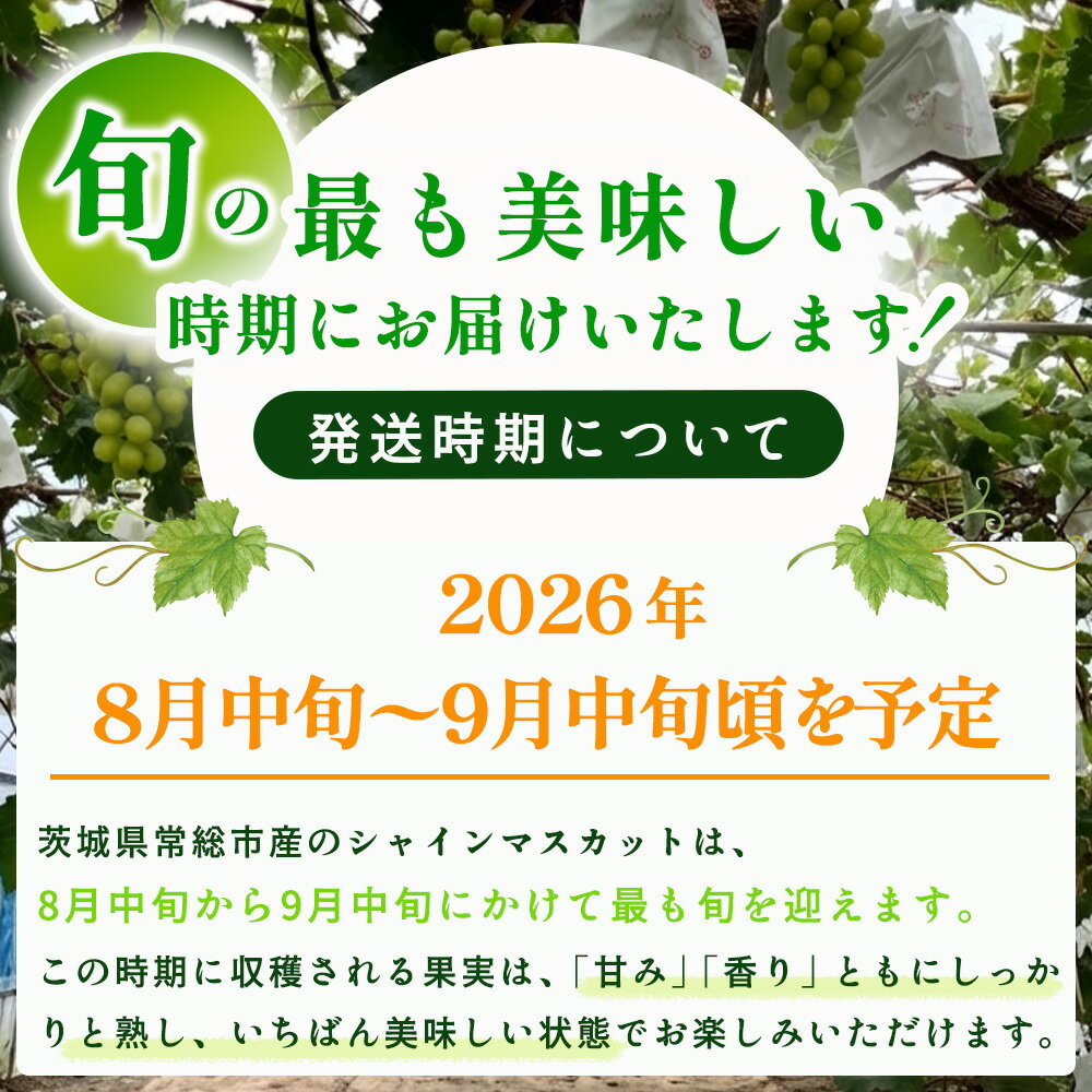 【ふるさと納税】\選べる内容量/茨城県常総市産 シャインマスカット | 2026年 先行予約 1.2kg 2.4kg 3kg ふるさと納税 シャインマスカット 果物 フルーツ ぶどう ブドウ 葡萄 ギフト 贈り物 お中元 お歳暮 内祝い 2026 予約 旬 ※2026年8月中旬~9月中旬頃に順次発送予定