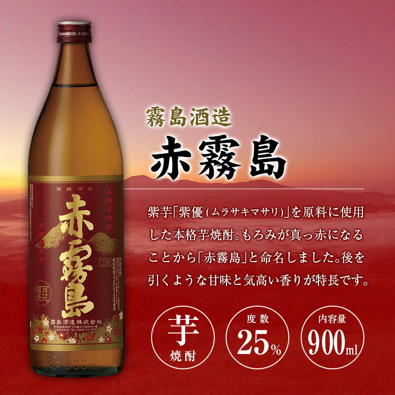 【ふるさと納税】宮崎県産「本格芋焼酎」3本セット 赤霧島・KIRISHIMA No.8・爽 飫肥杉 25度 900ml 瓶 飲み比べ