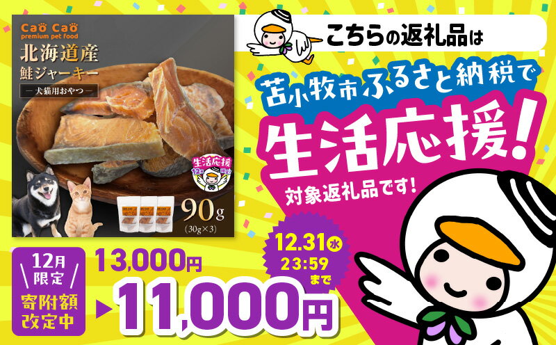 - 【ふるさと納税】 【数量・期間限定 12/31まで 年内 寄附額改定】<選べる> Cao Cao 北海道産 鮭ジャーキー 90g or 300g 犬猫用 おやつ 鮭 ジャーキー 無添加 グルテンフリー ペット 犬 猫 フード WORLD WIDE Style 北海道 苫小牧市 おすすめ ランキング プレゼント ギフト