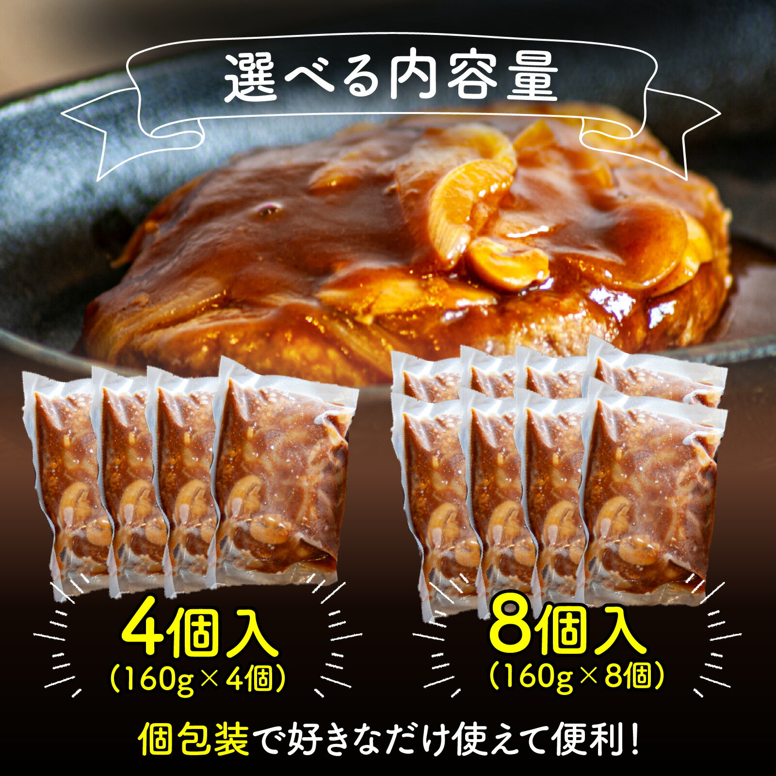 【ふるさと納税】【先行予約/選べる容量】KITO オリジナルハンバーグ 160g×4~8個(計640g~1,280g)| 肉 ハンバーグ おすすめ 冷凍 国産 惣菜 個包装 電子レンジ 簡単 調理 人気 牛豚鶏 合挽き 鶏肉専門店 デミグラスソース 160グラム 640グラム 1280グラム