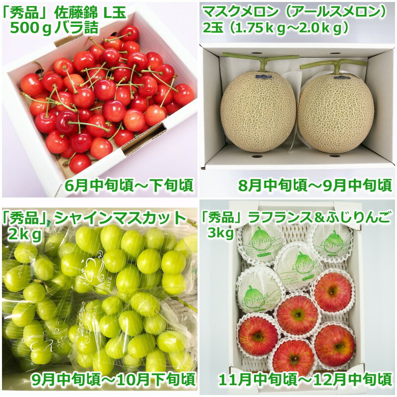 - 【ふるさと納税】【2026年発送】【定期便4回】山形旬の果物5選(佐藤錦/メロン/シャインマスカット/ラ・フランス&ふじりんごセット)_H149(R8)