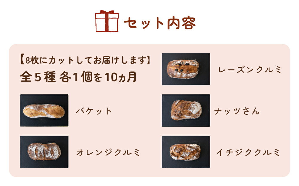 【ふるさと納税】【10ヵ月定期便】名取 閖上のぱんやこてつ 手作り 国産小麦のハード系パンセット 8枚カットしてお届け