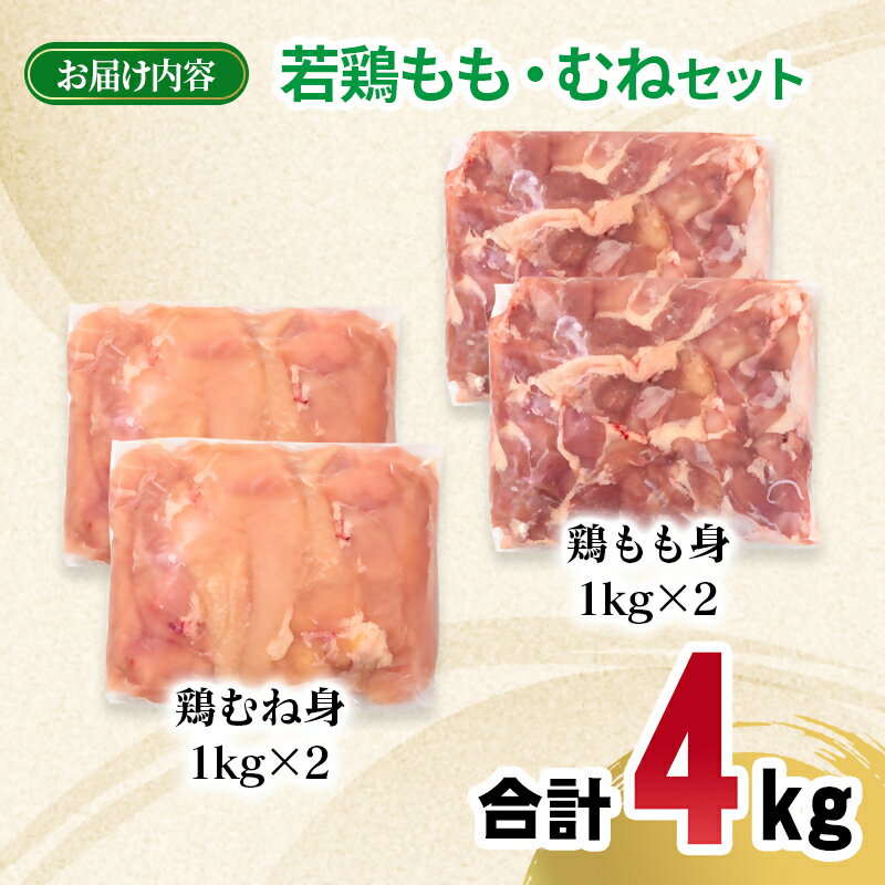 【ふるさと納税】宮崎県産若鶏 もも肉 むね肉 合計4kg <1.9-19> モモ肉 ムネ肉 もも身 むね身 とり肉 国産 真空パック
