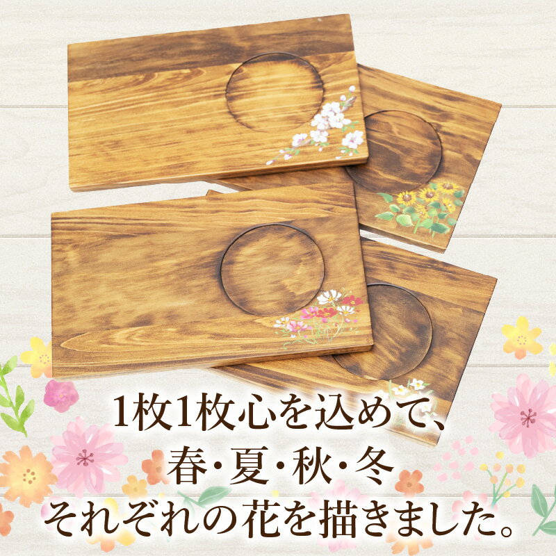 - 【ふるさと納税】四季の花々ティーマット4枚セット マット ティーマット ランチョンマット セット インテリア 雑貨 配膳用品 日用品 木工品 工芸品 木製品 木目調 木目 木製 木 ウッド 天然木 シンプル おしゃれ ダイニング 食卓 お茶会 ワンプレート ティータイム 宮崎市