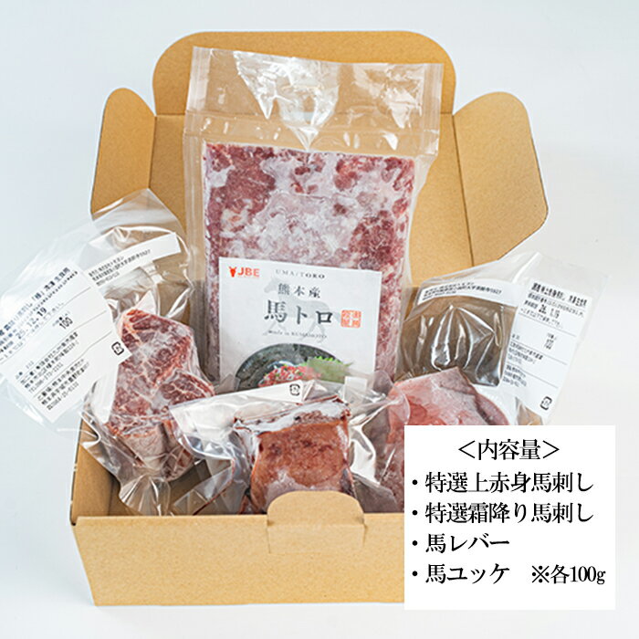 【ふるさと納税】馬刺し 4種 上赤身 霜降り 馬ユッケ 馬レバー 各100g 計400g 希少部位 定番 熊本名物 熊本と畜 贈り物 贈答 ギフト 急速冷凍 小分け 真空パック 鮮度を保持 専用箱 熊本 阿蘇 小国町 チルド 冷凍配送 送料無料【地場産品基準:類型8ハ】