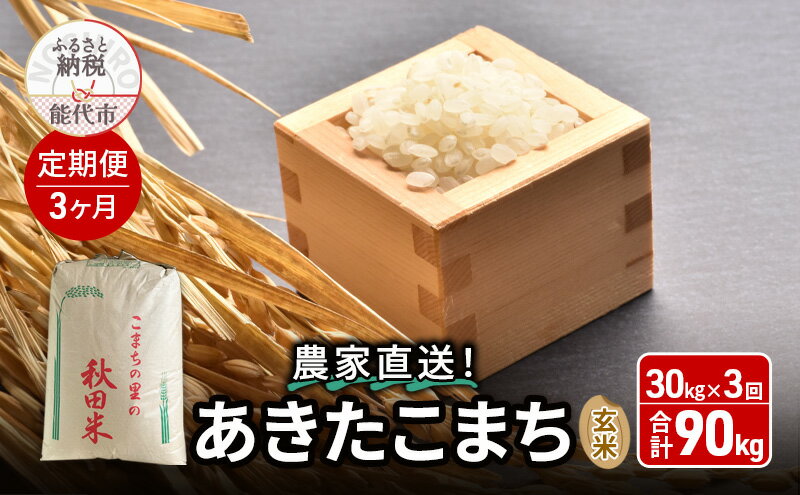 【ふるさと納税】《定期便3ヶ月》玄米 農家直送!うまい!! 本場のあきたこまち 30kg×3回 合計90kg ご飯 ブランド米 おにぎり 令和7年産 産地直送 おこめ ごはん 秋田県 秋田 能代市 お届け:2026年1月中旬頃より順次発送予定