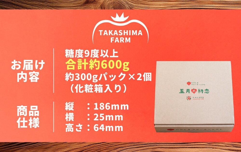 【ふるさと納税】たかしまフルーティトマト 「五月の初恋」 【糖度9度以上】 約300gパック×2個 計約600g 化粧箱×1箱 フルーティートマト フルーツトマト トマト とまと 野菜 やさい 高糖度 サラダ 料理 常温 長崎県 長崎市 送料無料 【2026年3月下旬~5月下旬発送予定】