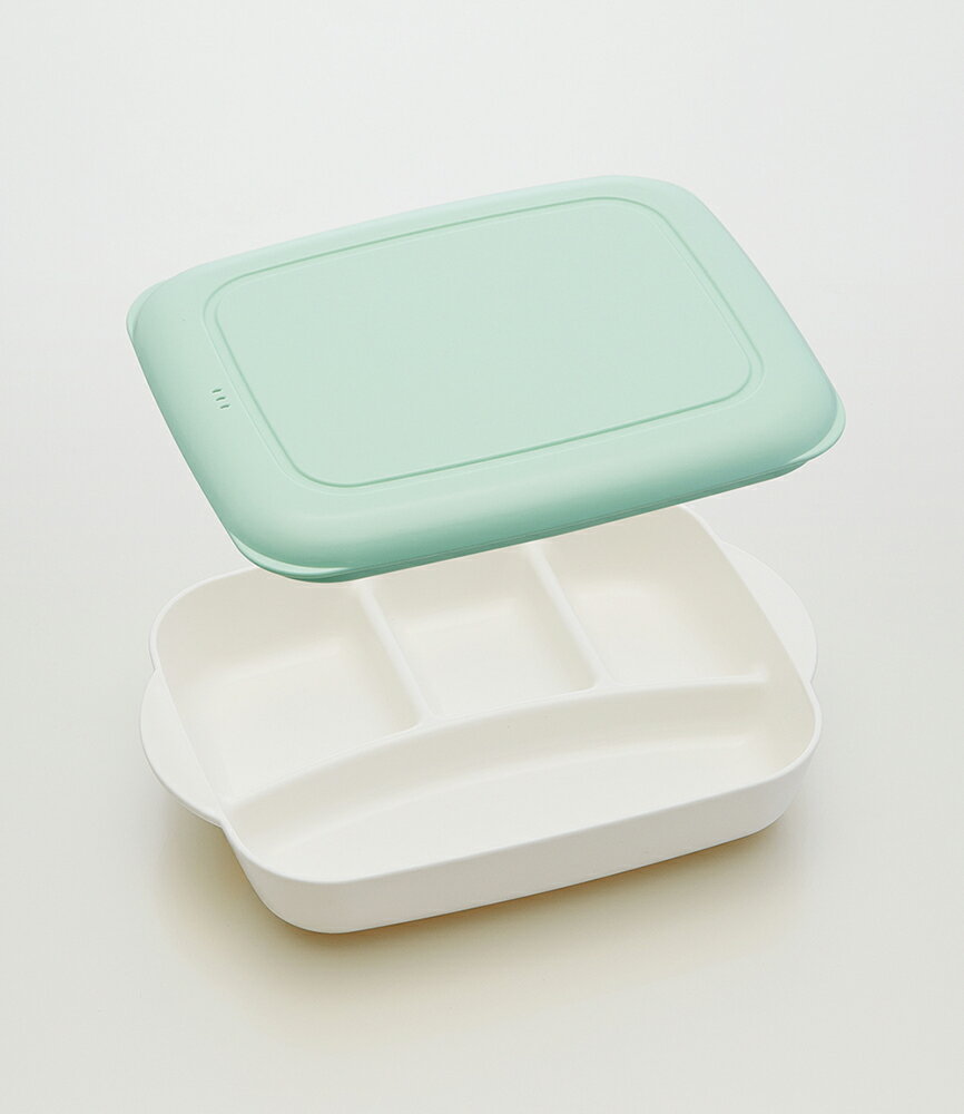 - 【ふるさと納税】作り置きワンプレート(L)[840ml]●パウダーパステル グリーン●//おうちランチ おうちご飯 仕切りプレート 一体型仕切付き フタ付き 冷凍 冷蔵 夜食 昼食 朝食 電子レンジ対応 食洗機対応 つくりおき 便利 緑 みどり green// スケーター 奈良県 奈良市 なら