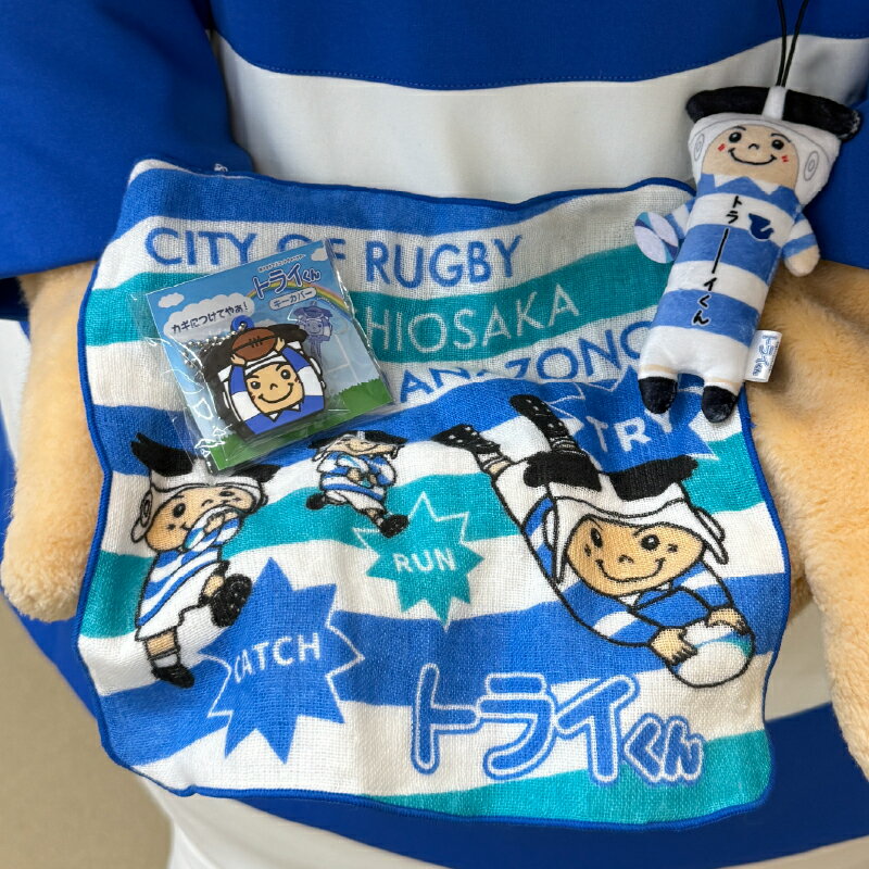 - 【ふるさと納税】トライくんグッズ3点セット (1)(のびトライくん・トライくんキーカバー・トライくんミニタオル)【 のびねこ シリーズ 限定 トライくん 東大阪市 マスコット キャラクター キーカバー ミニタオル 送料無料 】