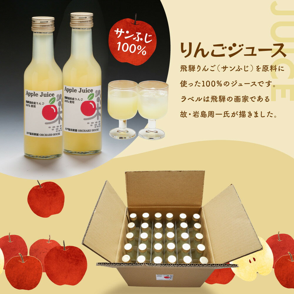 【ふるさと納税】【容量・本数選べる】飛騨りんご100%ジュース|飛騨産 リンゴ 果汁100% ジュース 180ml 30本 果樹園 飲み切り 1L たっぷり 飛騨高山 木戸脇果樹園オーチャードハウス FP006MP