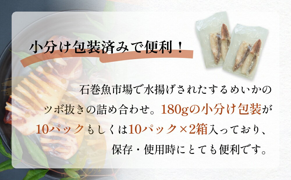 【ふるさと納税】訳あり 【量が選べる】 石巻産 柔らか するめいか ツボ抜き 180g × 10P or 20P