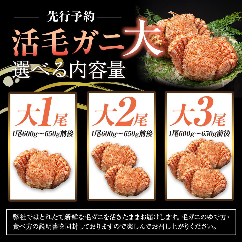 【ふるさと納税】 【先行予約/2026年4月発送開始】活毛ガニ 大1尾~大3尾(600g~650g前後) | 蟹 魚介類 水産 食品 人気 おすすめ 送料無料