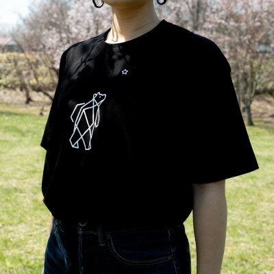 【ふるさと納税】「知床トコさん」×久米繊維 コットンTシャツ Sサイズ・ブラック 折り紙柄 半袖【配送不可地域:離島・沖縄県】【1697699】