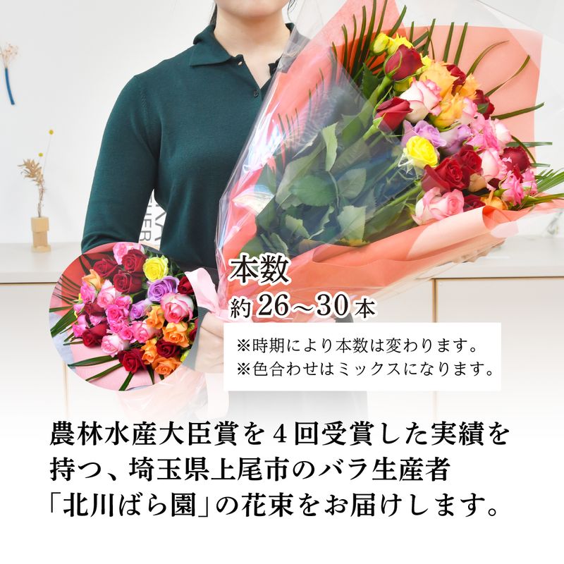【ふるさと納税】<配送エリア限定・着日指定必須> 生産農家直送 バラ 花束 新鮮 Mix 約26~30本 | バラ 薔薇 ローズ 花束 植物 インテリア 誕生日 記念日 お祝い 母の日 父の日 ラッピング有り リボン付き 多品種 農林水産大臣賞 生花 プレゼント ギフト 埼玉県 上尾市