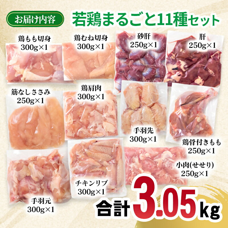 【ふるさと納税】宮崎県産若鶏 11種 3.05kgセット 小分け もも肉 むね肉 筋なしささみ 砂肝等々11種 小分け 11パック<1.4-34>とり肉 国産 真空パック 切身 切り身モモ肉 ムネ肉 ササミ