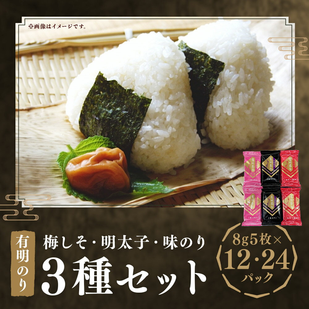 【ふるさと納税】<選べる容量> 梅しそ・明太子・味のり 3種セット 計12パック(8切5枚×各4パック) /計24パック(8切5枚×各8パック)福岡有明のり 味付け海苔 あじつけ海苔 味つけのり味海苔 あじのり 海苔 のり 有明海産 福岡県産 国産 福岡県 嘉麻市 送料無料