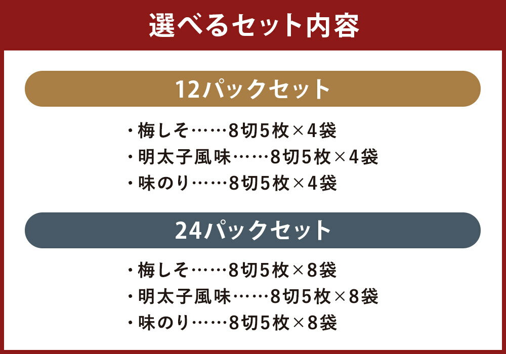 - 【ふるさと納税】<選べる容量> 梅しそ・明太子・味のり 3種セット 計12パック(8切5枚×各4パック) /計24パック(8切5枚×各8パック)福岡有明のり 味付け海苔 あじつけ海苔 味つけのり味海苔 あじのり 海苔 のり 有明海産 福岡県産 国産 福岡県 嘉麻市 送料無料
