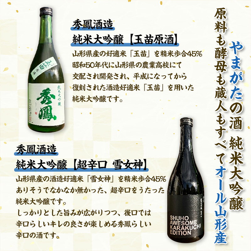- 【ふるさと納税】【やまがたの酒 純米大吟醸(精米歩合45%)】秀鳳酒造(玉苗原酒・超辛口雪女神)(720ml×2本) FY25-390
