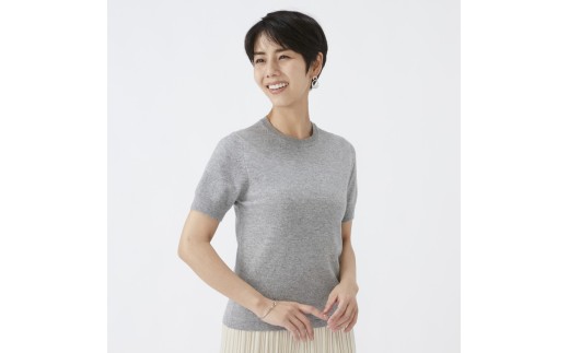 - 【ライトベージュ】日本製 カシミヤ100% レディース クルーネック半袖 Sサイズ