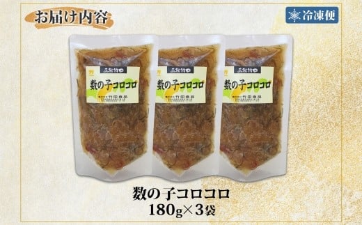数の子コロコロ 180g 3袋 北海道 数の子 にしん 鰊 松前漬け 漬物 醤油 海鮮 生鮮 珍味 おつまみ ご飯 おかず お酒 晩酌 お取り寄せ グルメ 冷凍 竹田食品 函館市 _HD134-021