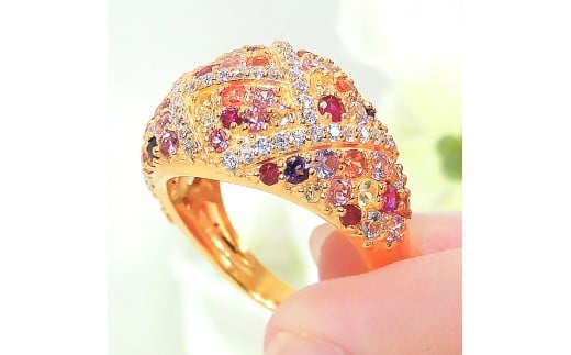 指輪 リング K18YG イエローゴールド ダイヤモンド 0.3ct パヴェ マルチカラー 赤系 レディース ゴージャス ボリューム 幅広 18金 贅沢 Pave ステンドグラス ジュエリー 【f295-r-k18yg】※8号 ALPAZ190-8