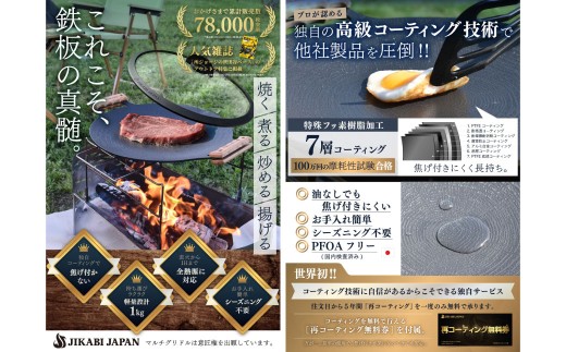 JIKABI JAPAN マルチグリドル 直径33cm 専用蓋付き5点セット キャンプ アウトドア 鉄板 【日本正規品】 グリル フライパン 軽量 IH 焚き火台 ガスコンロ 直火 福岡県 北九州市