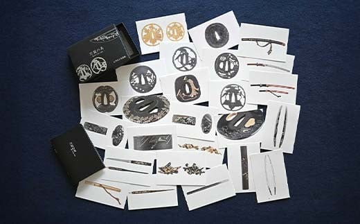 「刀装の美」ポストカードセット 25種類 銀箔押黒箱入り 学芸員によるミニ解説書(全8頁)付 足利市立美術館 F7Z-1809