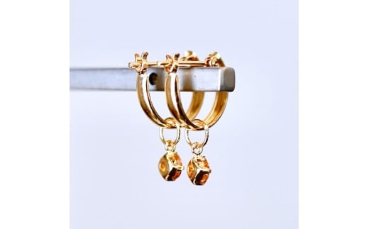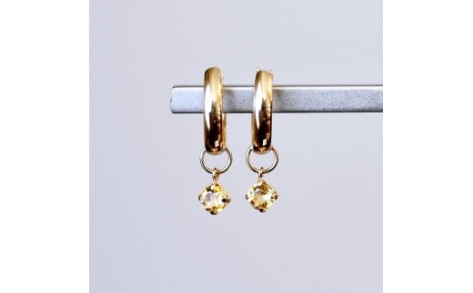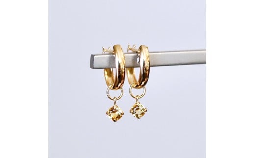 - K18(18金) イエローゴールド 2WAY ピアス 地金 シトリン フープピアス(直径10mm) 保証書付 SMK-5249 SWAD099-cit