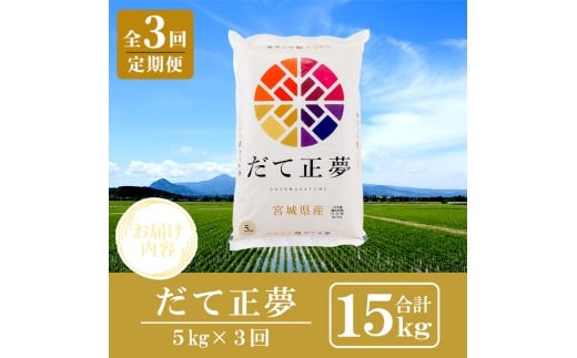 - <3ヶ月定期便>宮城県産 だて正夢 合計15kg (5kg×3回) お米 おこめ 米 コメ 白米 ご飯 ごはん 伊達 だてまさゆめ おにぎり お弁当 ブランド米 頒布会【株式会社パールライス宮城】ta600