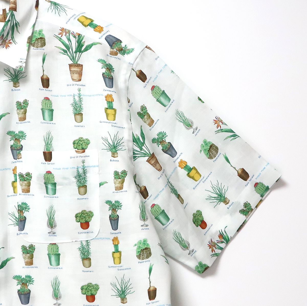 - 【ふるさと納税】CLOFT 麻100%半袖オリジナルプリントシャツ”サボテン多肉植物柄”(C/#11 ホワイト) M 新宿区 シャツ カジュアル オリジナル 柄 上質 こだわり プレゼント 半袖 夏服 0139-029-S07-1