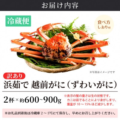 - 【訳あり】≪浜茹で≫ 越前がに 600~900g前後 × 2杯【1月発送分】【配送不可地域:離島・北海道・沖縄】【1372644】